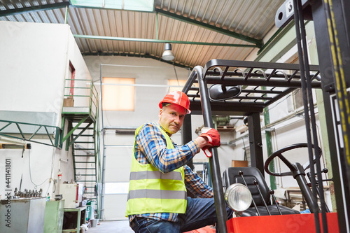 Lagerist als Staplerfahrer auf dem Gabelstapler