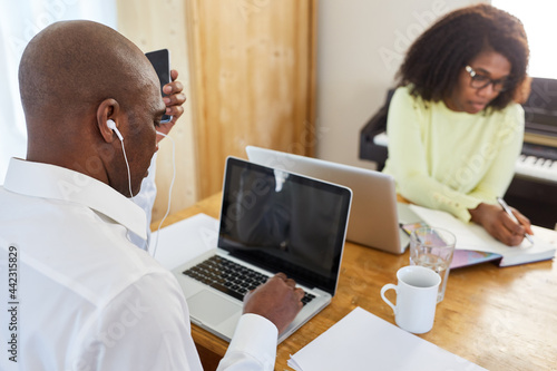 Afrikanischer Business Mann am Laptop Computer im Home Office