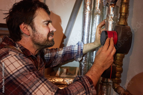 Installateur prüft Wasserdruck der Heizungsinstallation