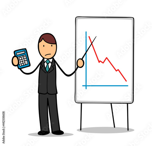 Geschäftsmann zeigt Verlust als Krise und Wirtschaft Konzept