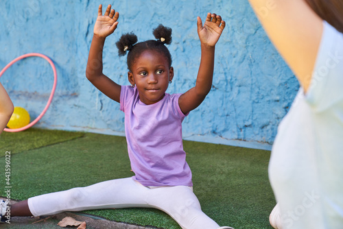Afrikanisches Mädchen macht Gymnastik mit Anleitung