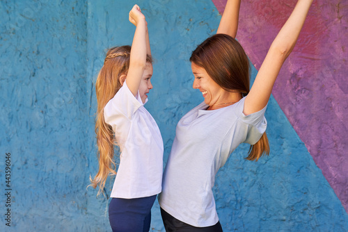 Turnlehrerin und Mädchen machen zusammen Gymnastik
