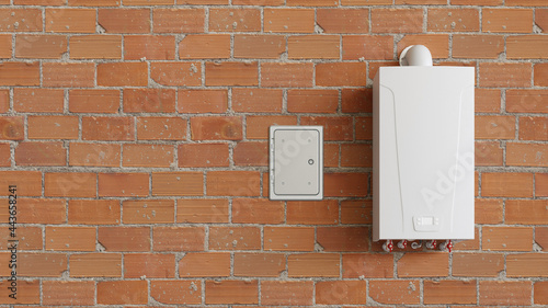 Gasboiler oder Durchlauferhitzer an blauer Wand