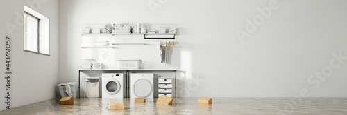Wasserschaden in Waschküche im Keller mit Schimmel