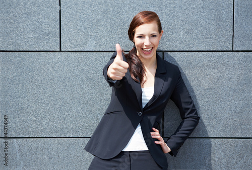 Geschäftsfrau hält Daumen hoch