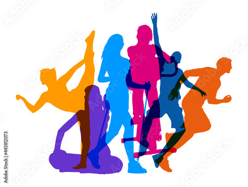 Menschen in Bewegung bei verschiedenen Sportarten als Silhouetten