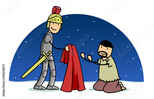Sankt Martin schenkt Bettler seinen Mantel im Winter