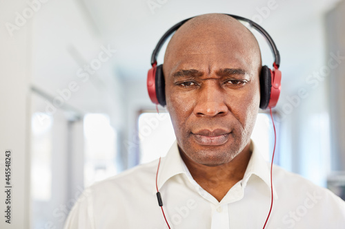 Afrikanischer Mann mit Kopfhörern beim Musik hören