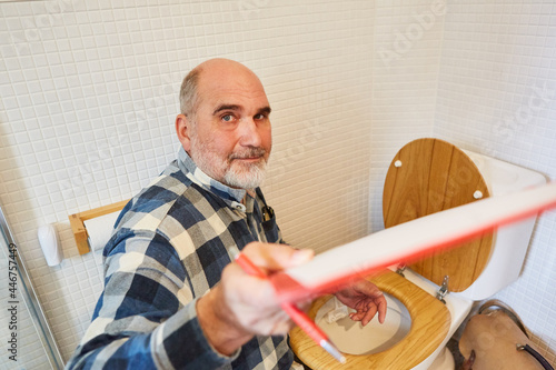Klempner mit Klemmbrett plant WC Reparatur