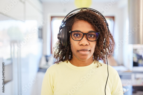Afroamerikanische Studentin mit Kopfhörer beim E-Learning
