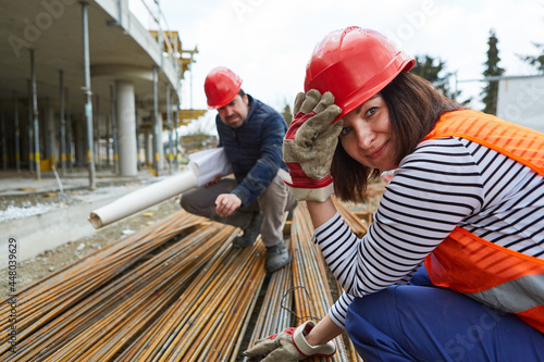 Kontrolle von Baustahl auf der Baustelle vom Hausbau