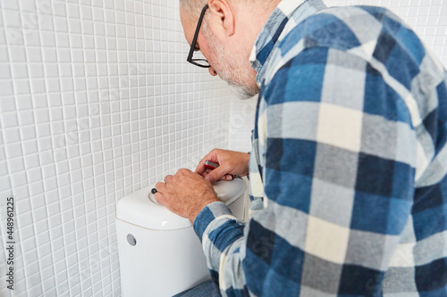 Klempner repariert defekte Toilettenspülung am WC
