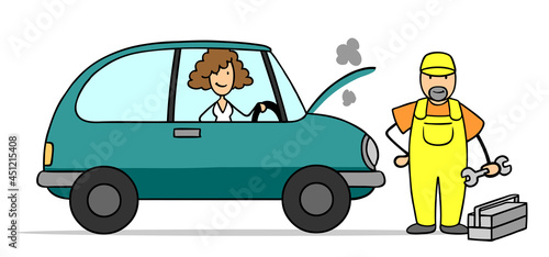 KFZ-Mechaniker von Pannendienst behebt Motorschaden
