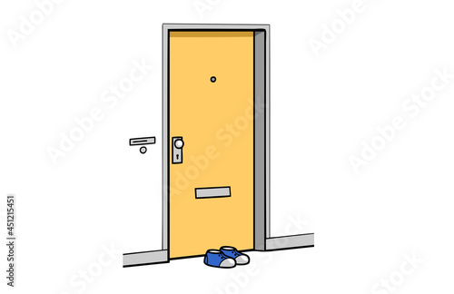 Paar Schuhe vor Wohnungstür abstellen im Hausflur