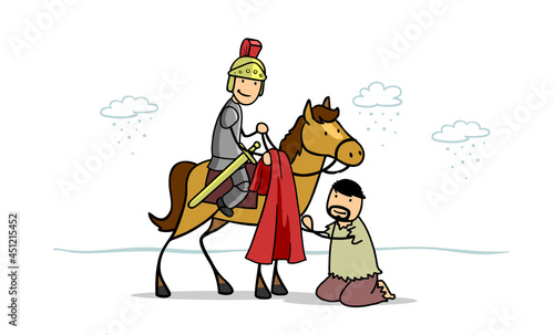 Sankt Martin schenkt Bettler seinen Mantel im Winter