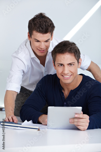 Zwei Geschäftsleute arbeiten als Team zusammen im Büro
