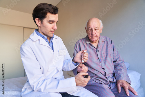 Altenpflegerin hilft Senior beim Schuhe anziehen