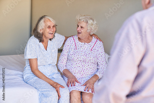 Zwei Senior Frauen als beste Freundinnen auf dem Bett