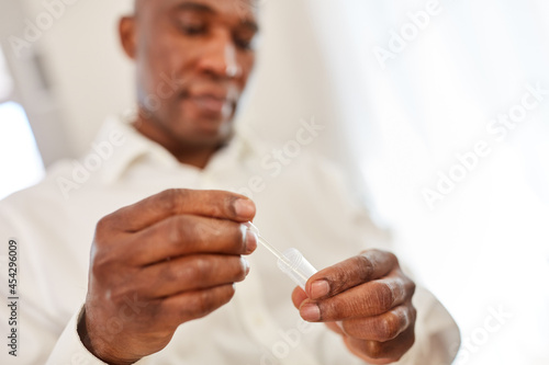 Afrikanischer Mann macht Coronavirus Selbsttest mit Speichelprobe