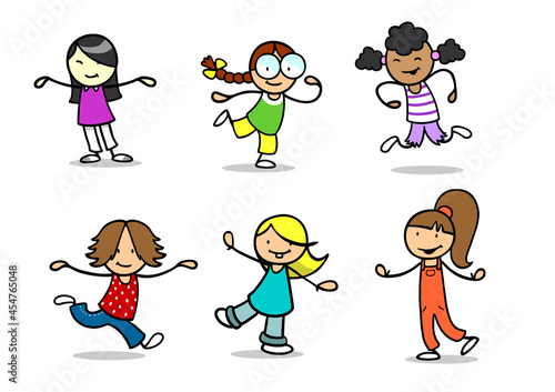 Viele verschiedene aktive Mädchen mit Hosen