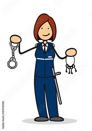 Cartoon Frau als Justizvollzugsbeamtin mit Handschellen