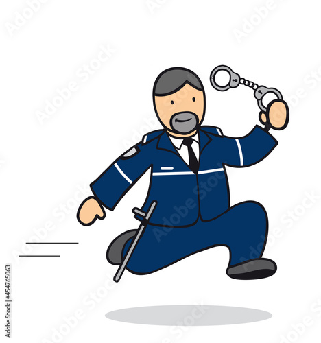 Laufender Cartoon Correctional Officer in USA mit Handschellen