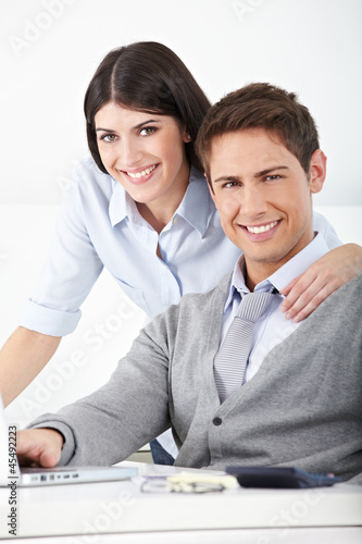 Geschäftsfrau als Trainee zusammen mit eine Kollegen