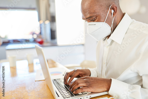 Business man with face mask because of Covid-19 at the computer