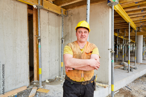 Man with a yellow hard hat as a construction worker