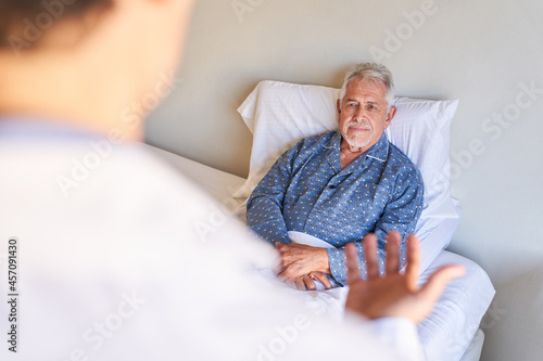 Senior als Patient im Bett im Krankenhaus mit Tablet Computer