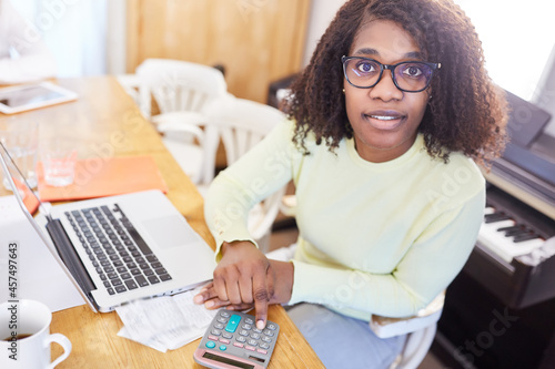 Frau am Computer mit Kassenzettel bei Steuererklärung