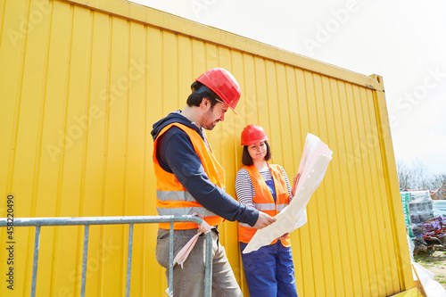 Handwerker auf Baustelle erstellt Kostenvoranschlag