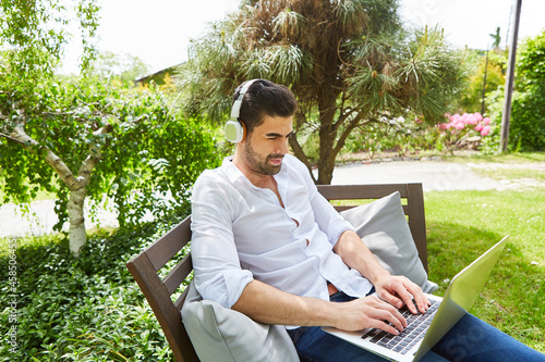 Freiberufler bei Projekt Planung am Laptop im Garten