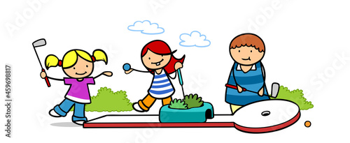 Mädchen jubelt beim Minigolf Spiel mit Freund