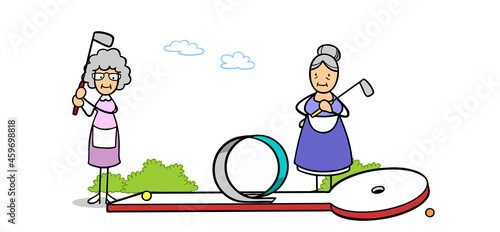 Seniorinnen beim Minigolf Spiel in ihrer Freizeit