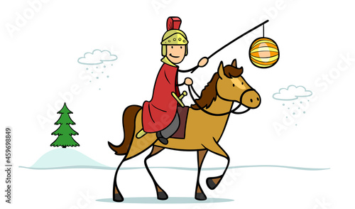 Sankt Martin auf Pferd in Winter Landschaft