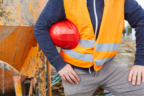 Arbeiter auf einer Baustelle mit rotem Schutzhelm