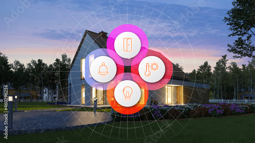 Haus gesteuert mit Smart Home Technologie auf Tablet
