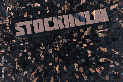 Luftansicht einer Stadt mit Schriftzug Stockholm in 3D