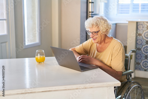 Seniorin am Laptop Computer freut sich auf einen Videoanruf
