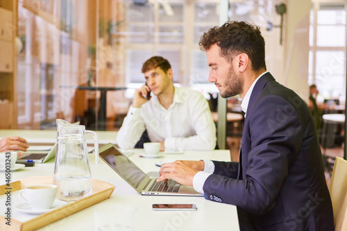 Businessman doing research on laptop computer
