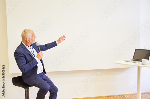 Älterer Geschäftsmann als Referent bei einer Präsentation