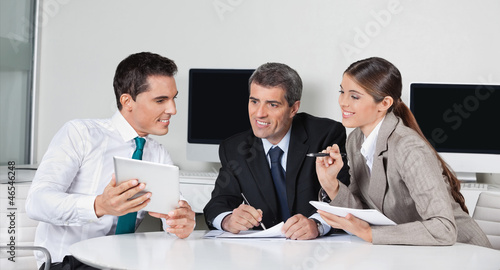 Business Leute vom Start-Up Team diskutieren lebhaft am PC