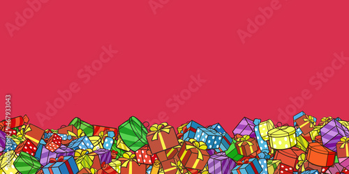 Geschenke vor rotem Hintergrund mit Textfreiraum als Panorama