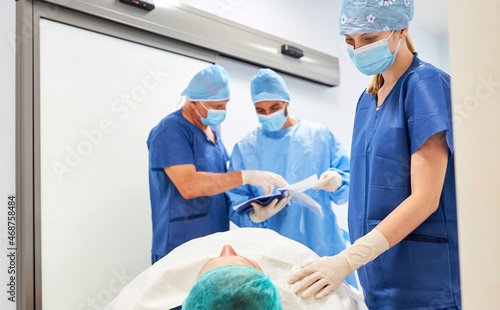 Anästhesist gibt Patientin Anästhesie Behandlung