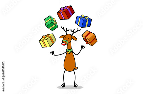 Weihnachtsbaum und Rentier jonglieren Geschenke zu Weihnachten