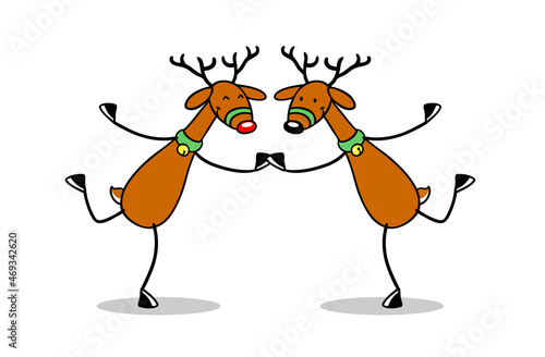 Zwei glückliche Rentiere tanzen zusammen zu Weihnachten