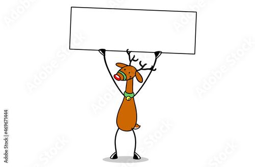 Tanzendes Rentier hält Schild mit Textfreiraum
