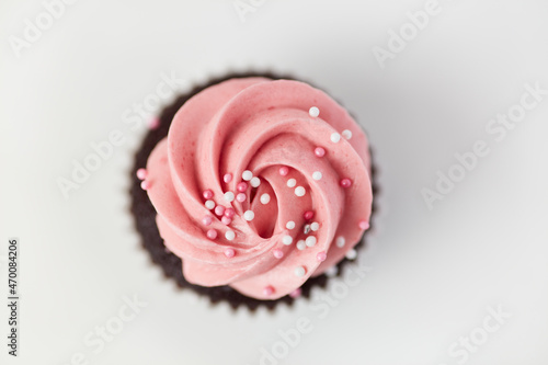 Kleiner Cupcake mit rosa Himbeercreme als Dekoration