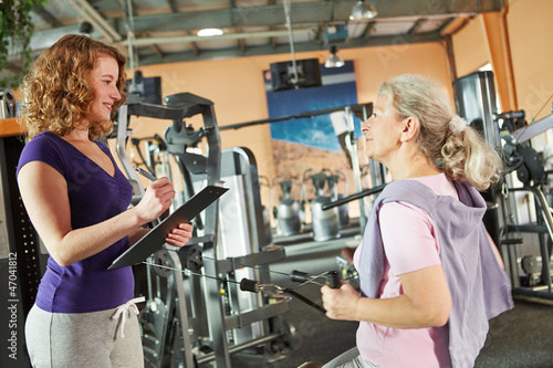 Seniorin am Kabelzug im Fitnesscenter